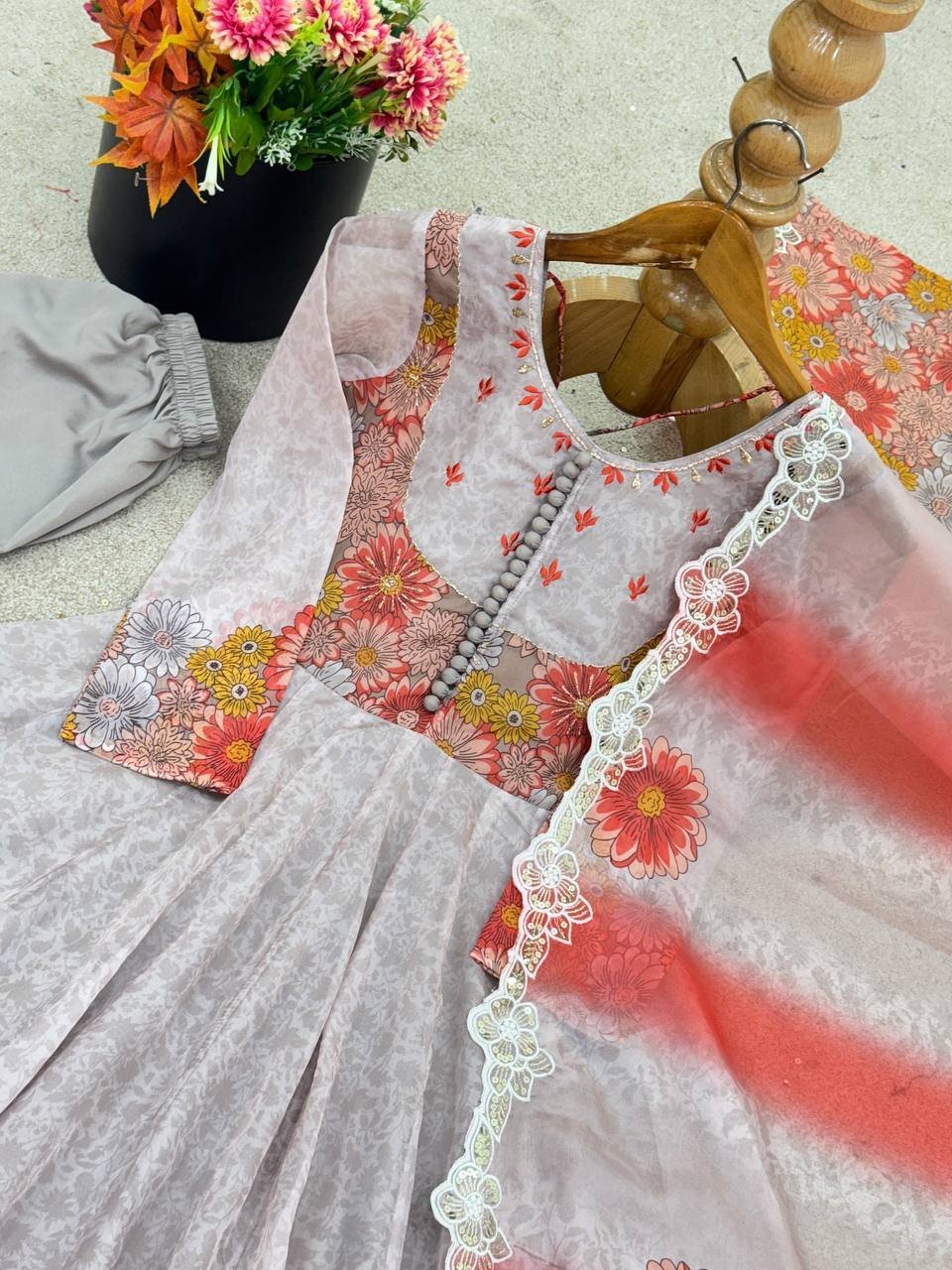 Design: Embroidery Sequence Work with Digital Print
