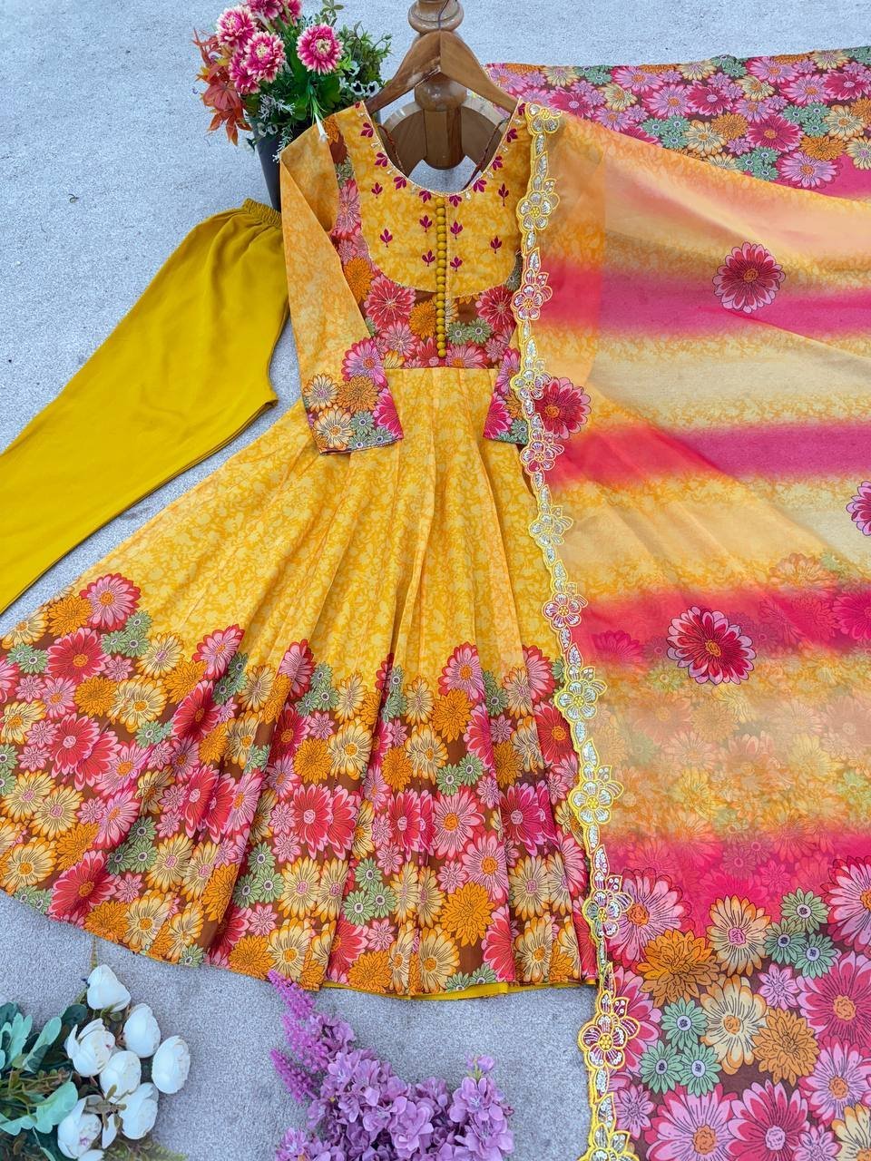 Aamira Orange Organza Digital Print & Sequins Embroidered Gown with Pant and Dupatta