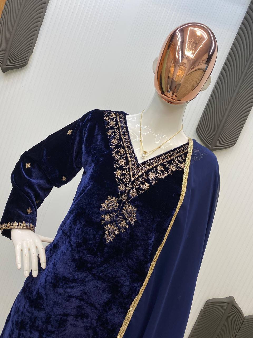 Advika Blue Velvet Sequence Embroidery Partywear Suit