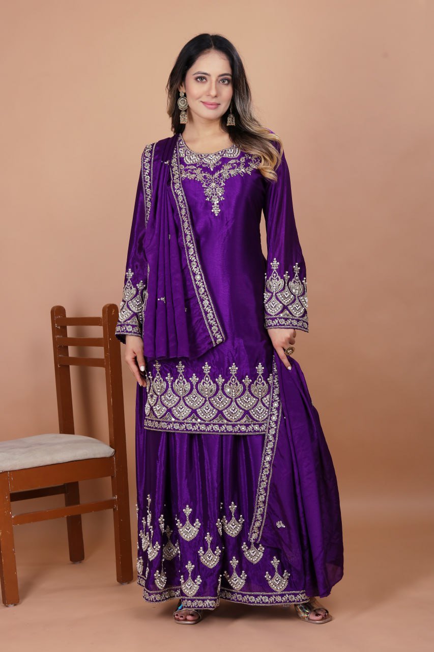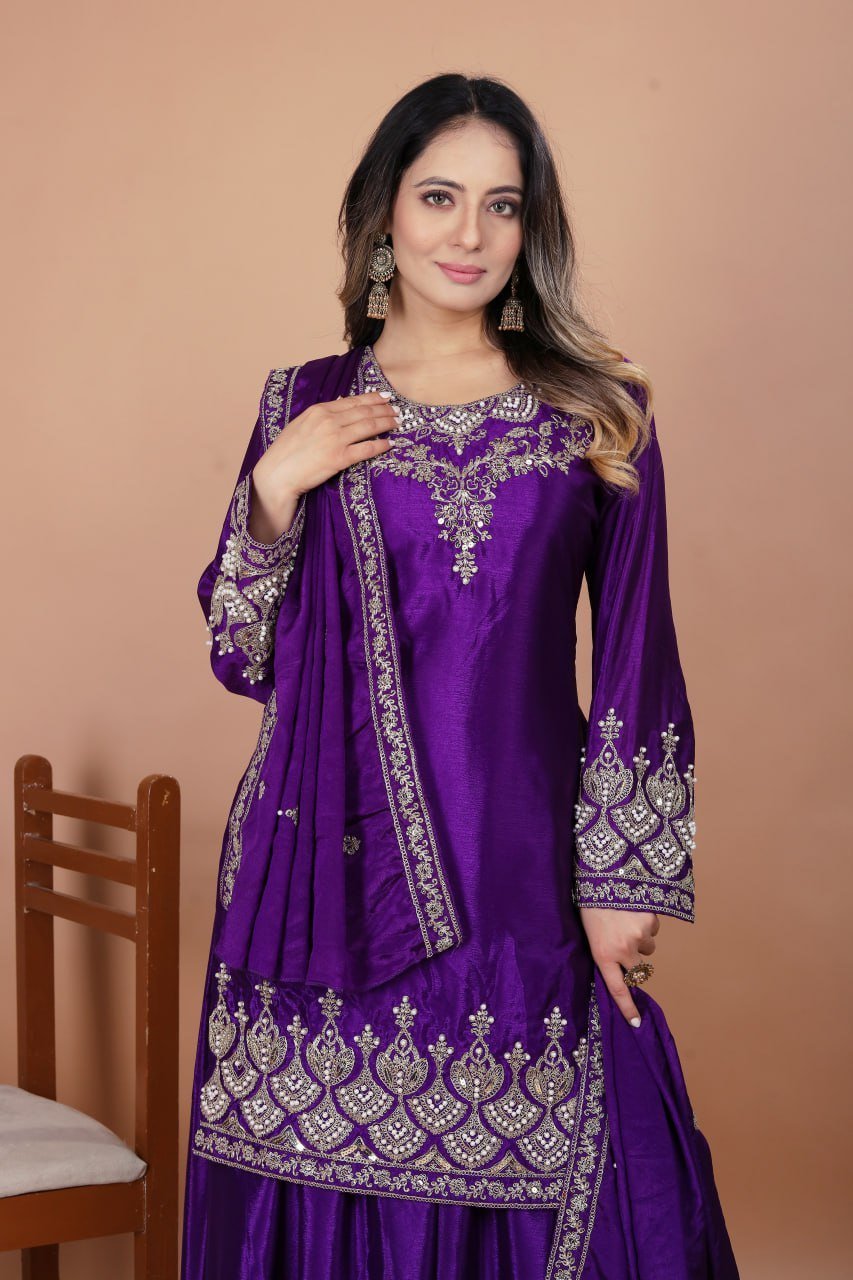 Fabric: Chinon with coding sequence embroidery & rivet moti work