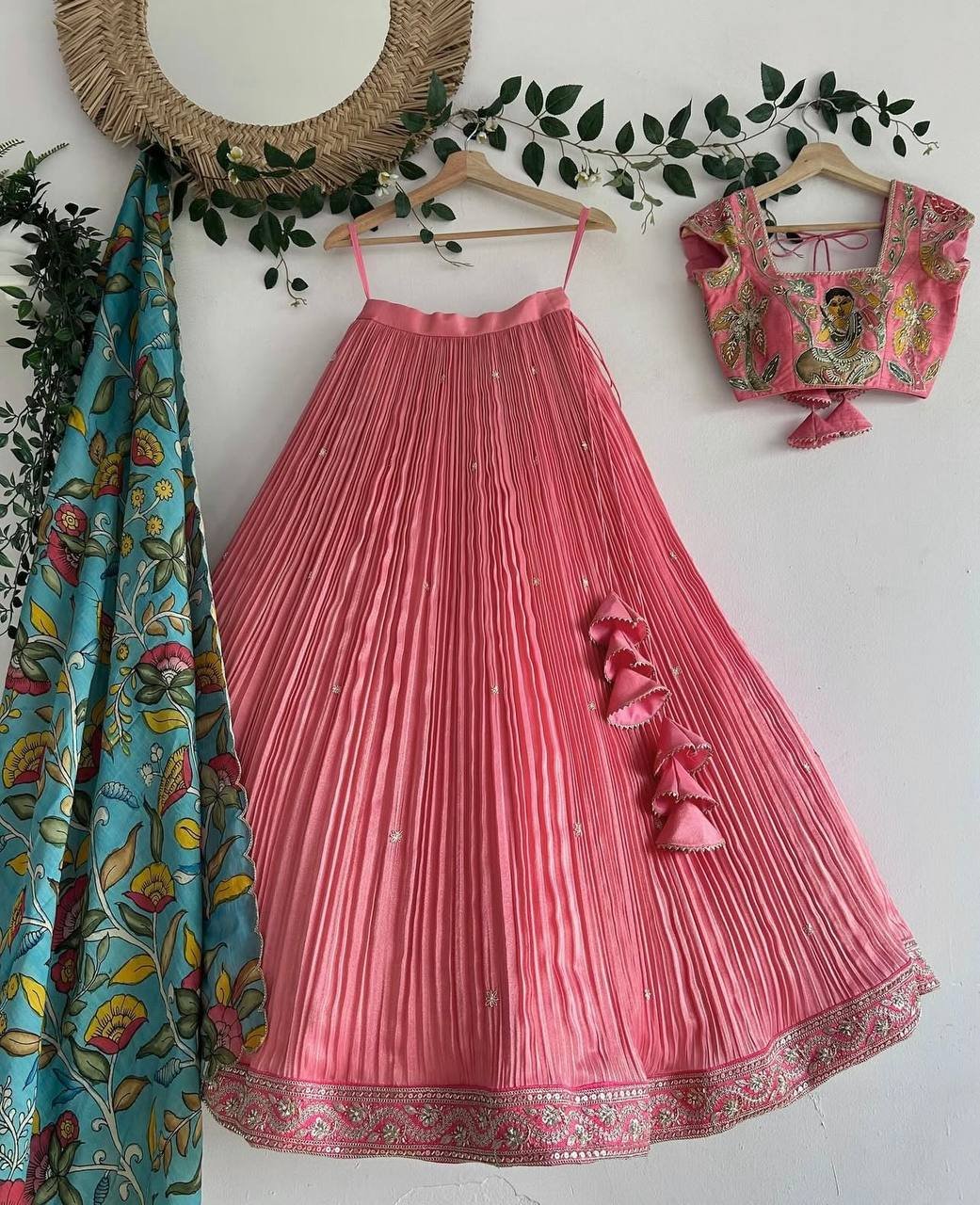Fabric: Heavy Chinon Silk with embroidery sequins work, soft print & crushed design