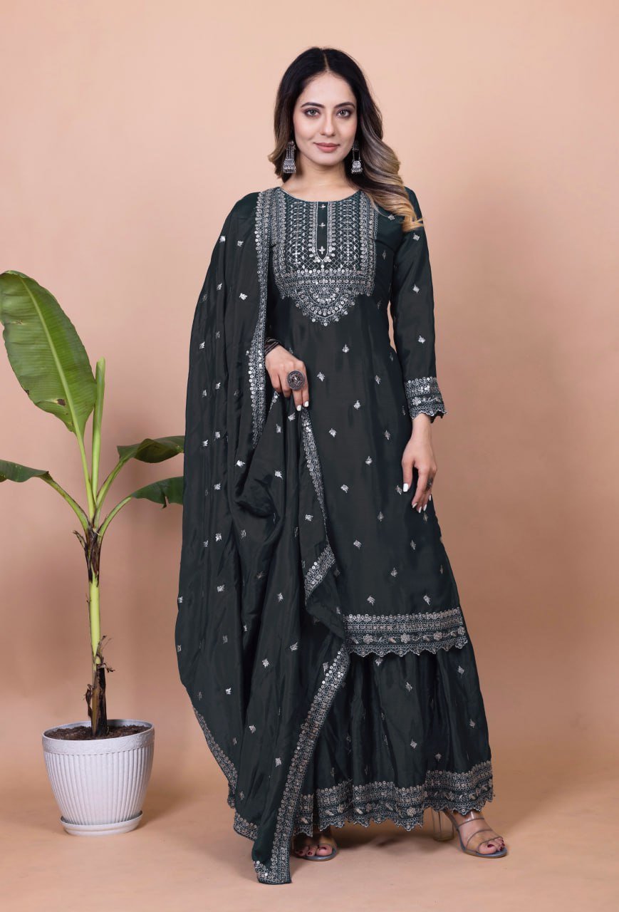 Black Color Sequins Embroidered kurta Sharara Set for Weddings