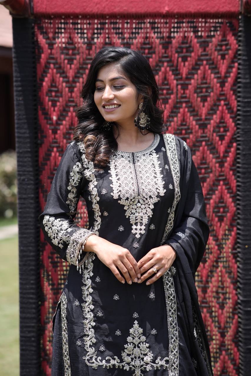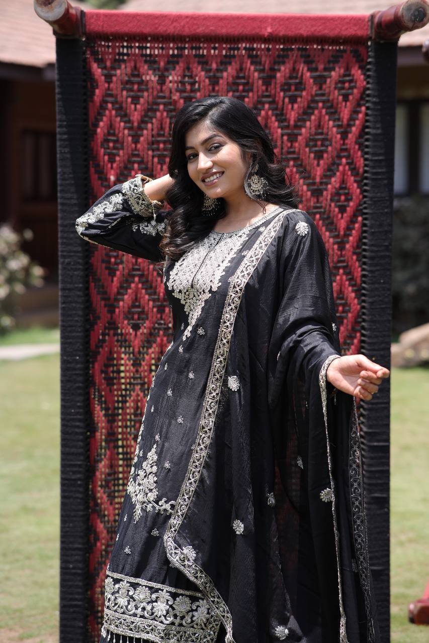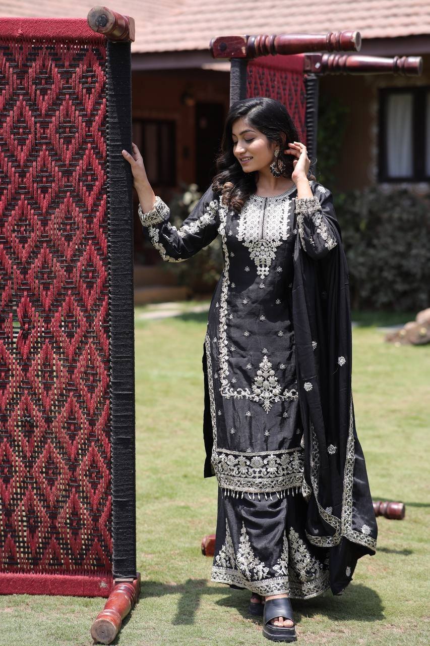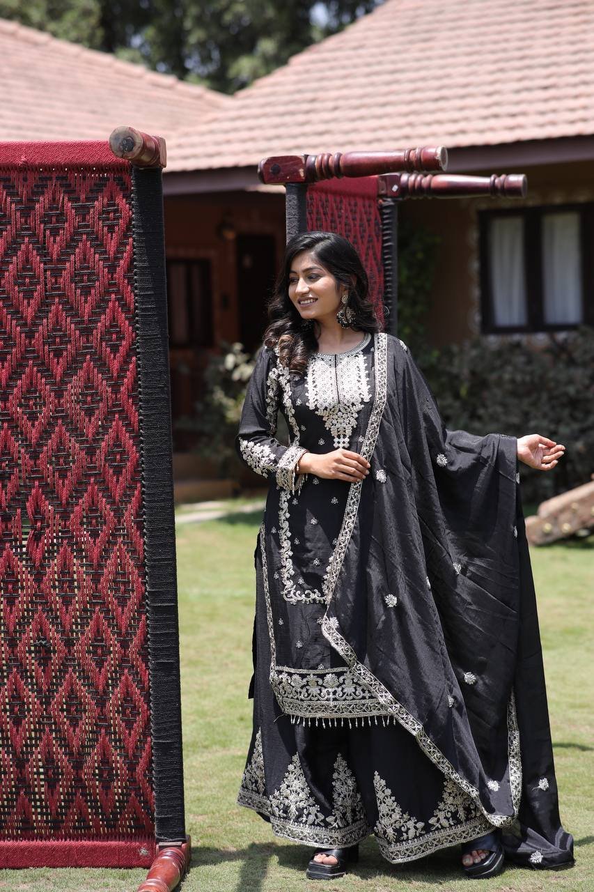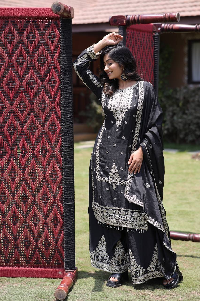 Plazzo Fabric: Pure Chinon Silk Fabric (Fully stitched)