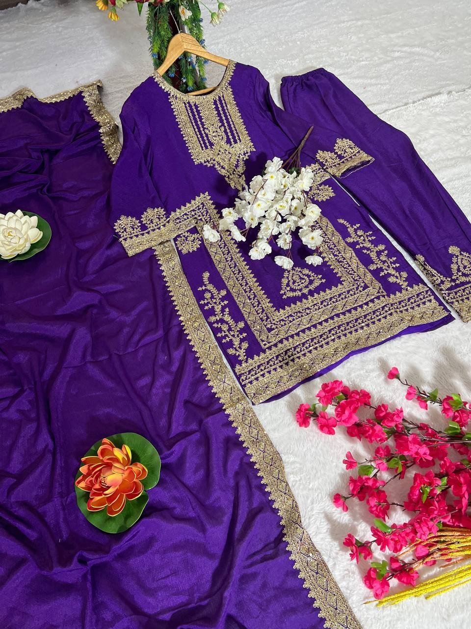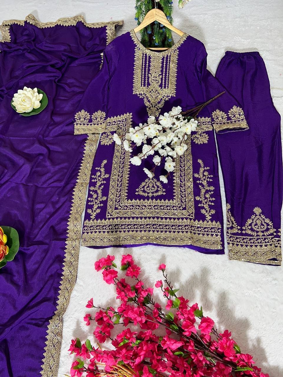 Chinon Silk Multi Needle & Sequins Embroidered Falsa Straight Fit