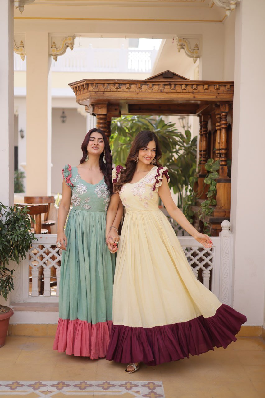 Sleeves: Sleeveless with Double Frill Stitching