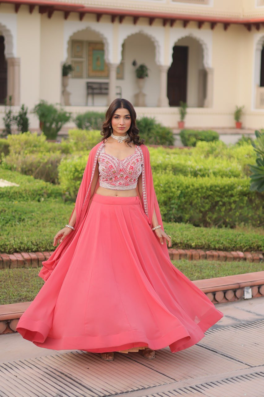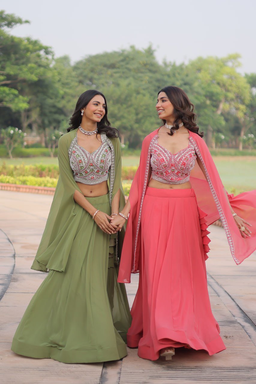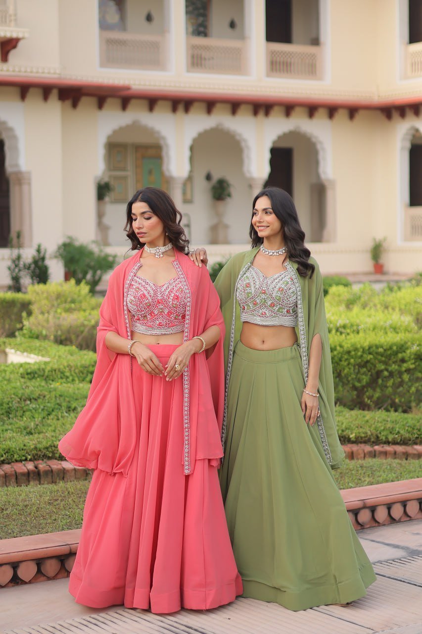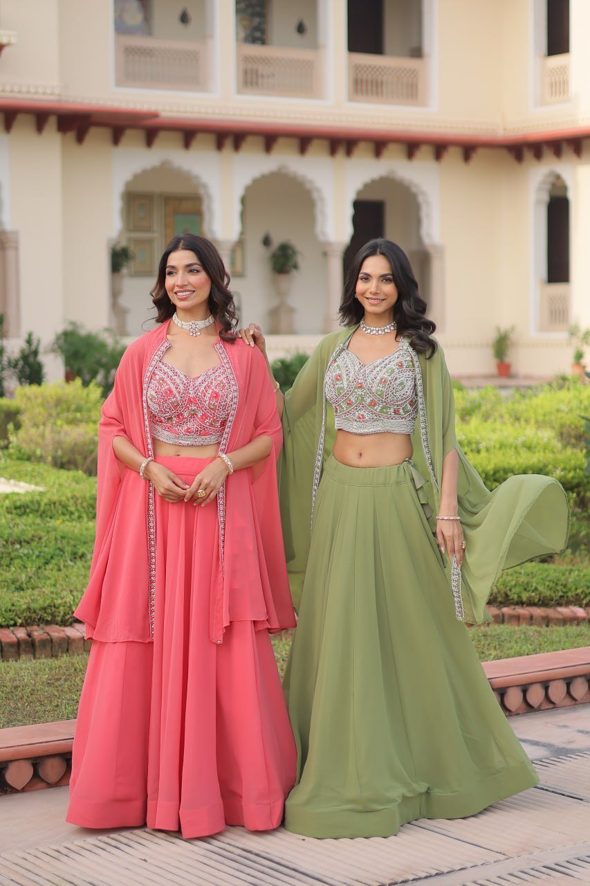 Fabric & Work: Faux Georgette with Beads Embroidery & Thread Work