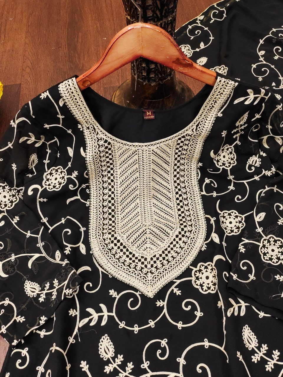 Designer Georgette Sharara Set – Black Embroidered Suit for Festivals
