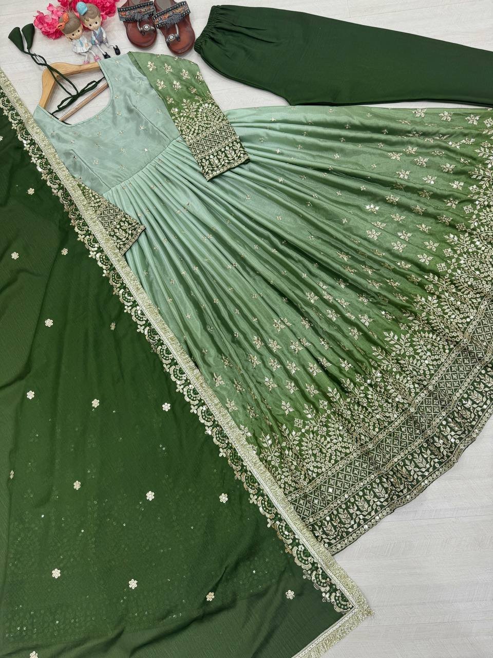 Fabric: Heavy Pure Dual-Tone Peding Chinon Silk with Embroidery and 5mm Sequence Work, Includes Sleeves with Tassels