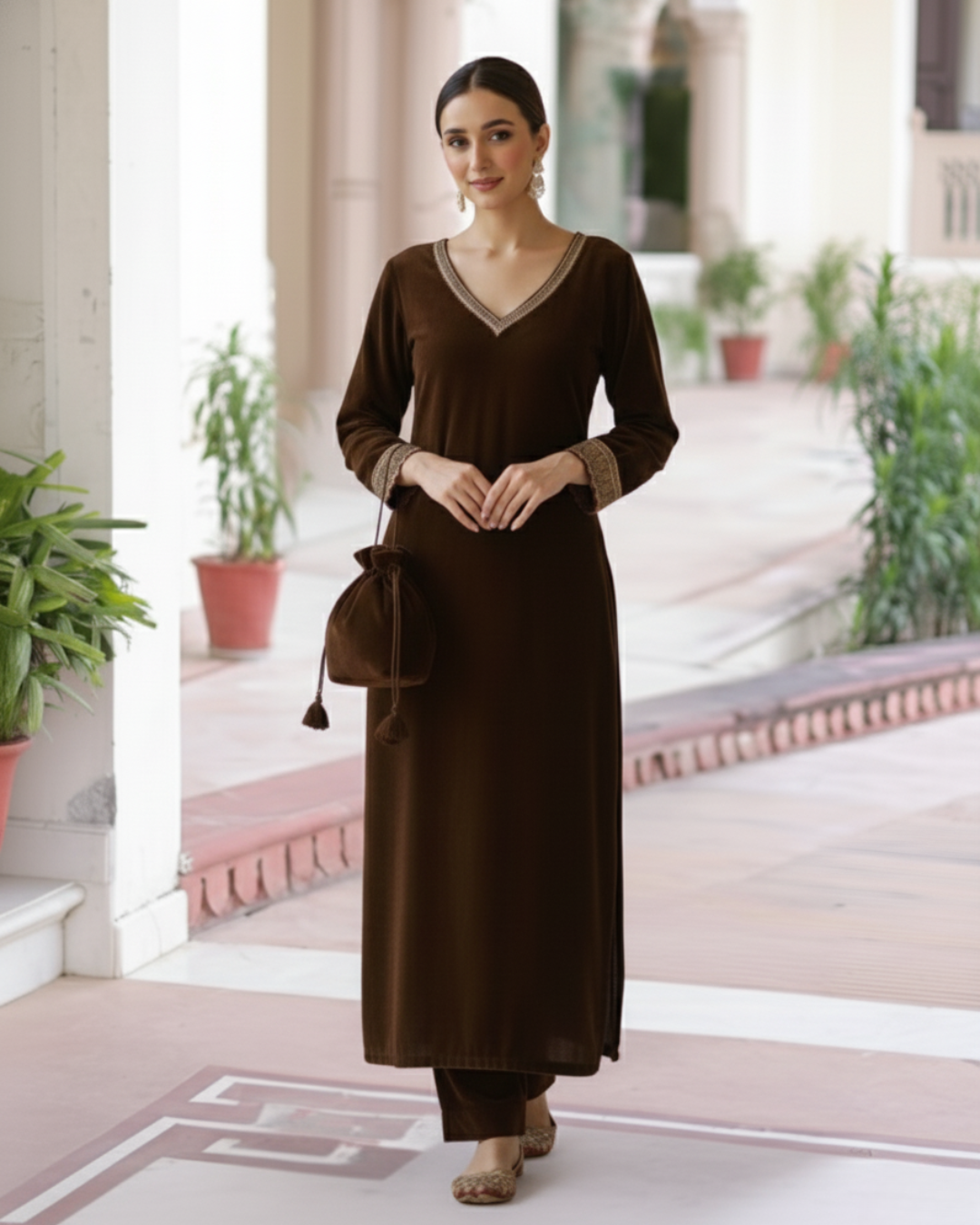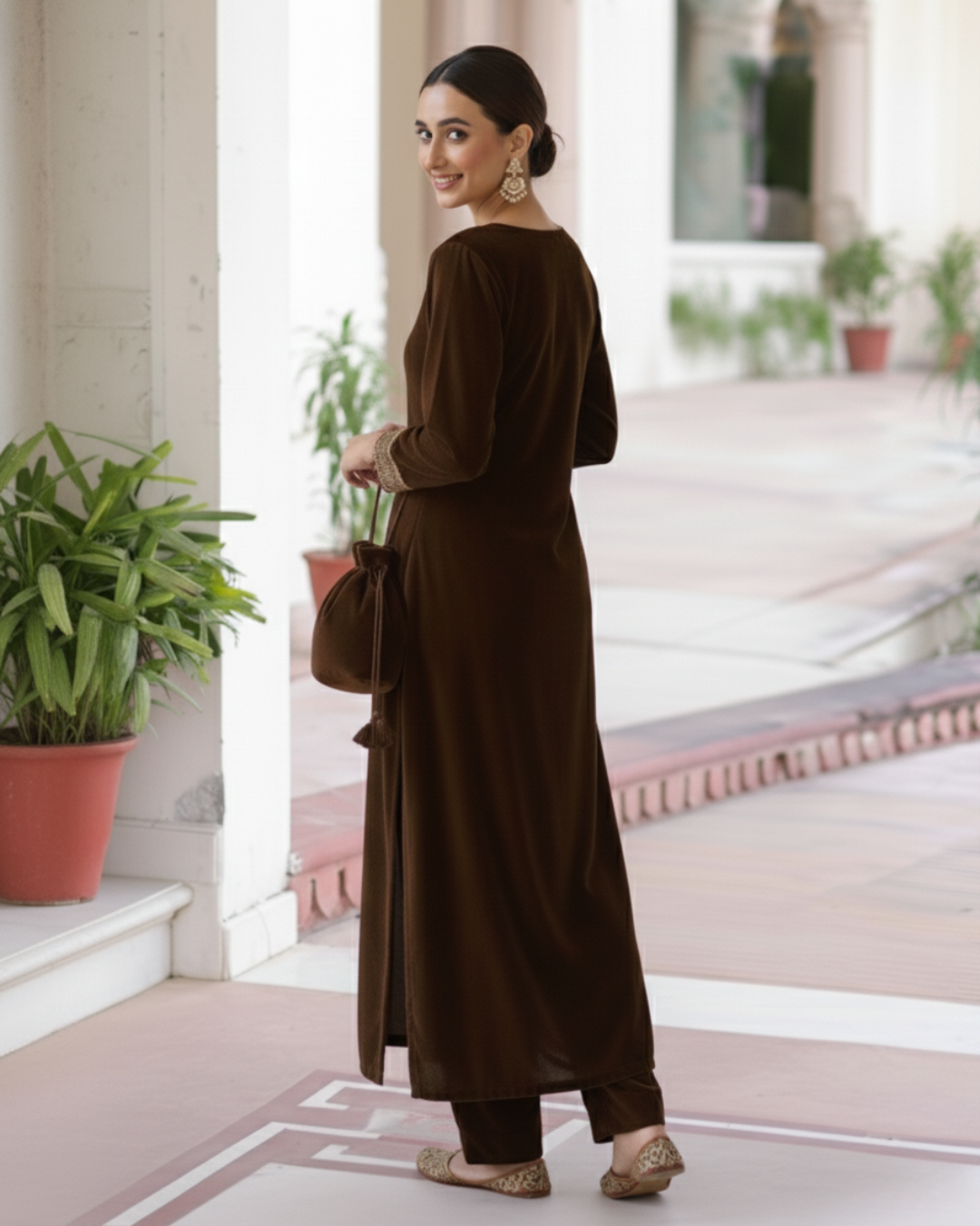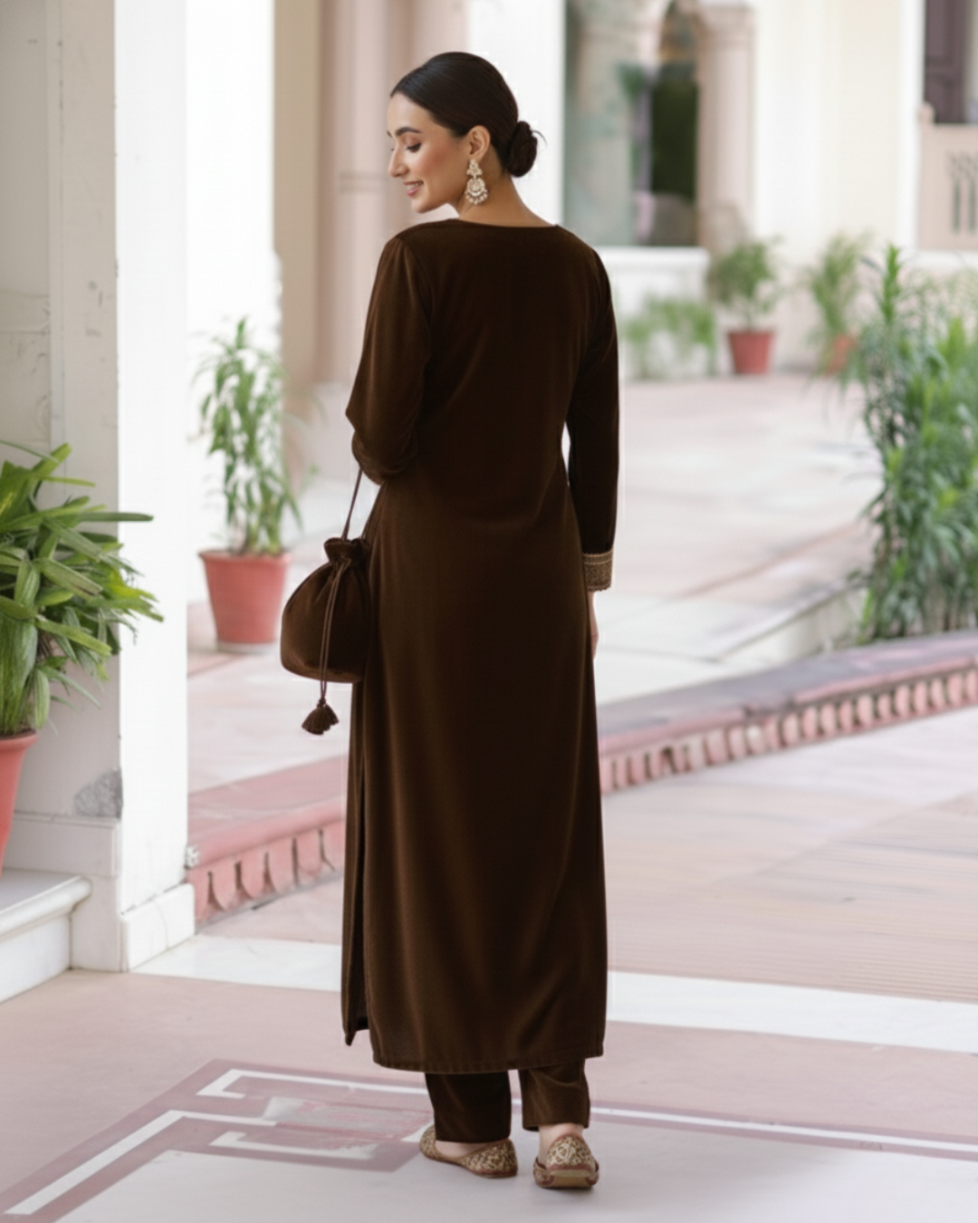 Eid Exclusive Coffee Pakistani Style Velvet Straight Fit for Women