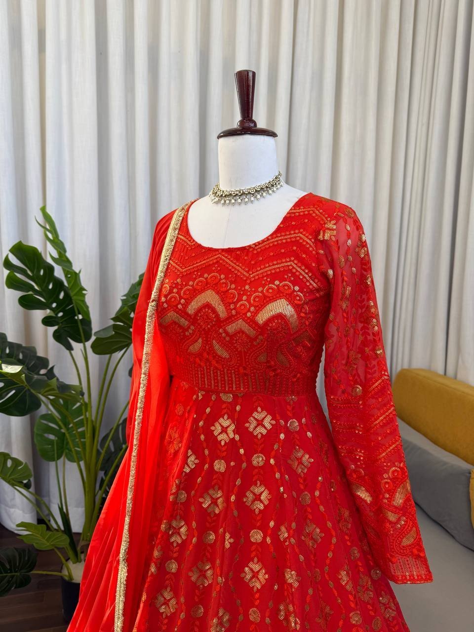 Elegant Georgette Embroidered Gown with Pant & Dupatta