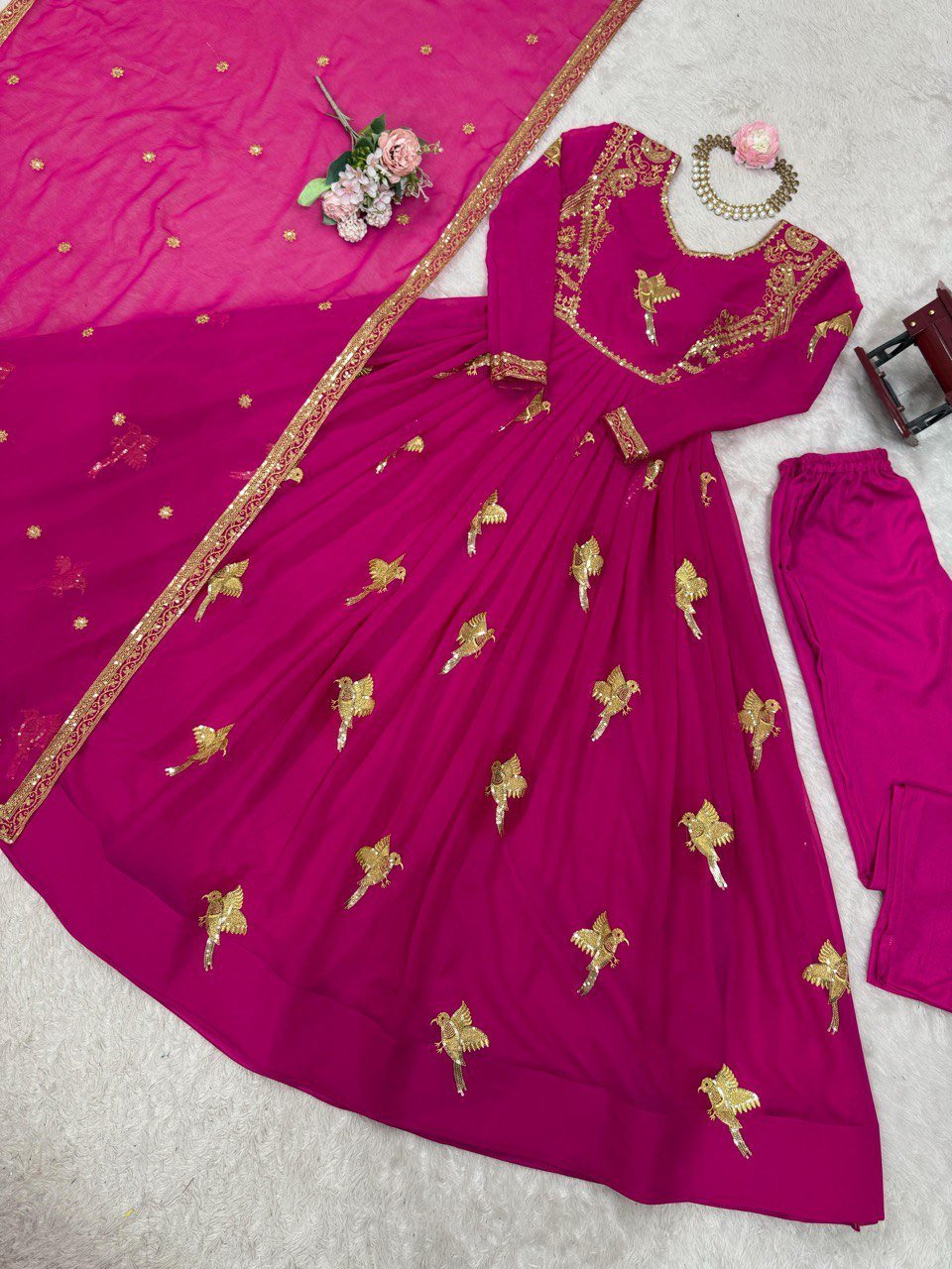 Work: Thread with Sequin Embroidery Work (Front and Back Both Side)