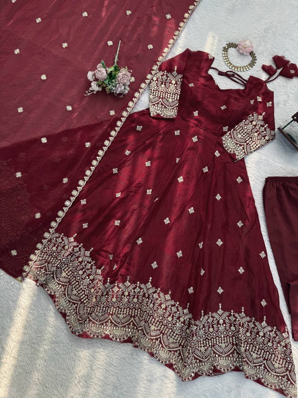 Work: Thread & Sequins Work with Fancy Lace