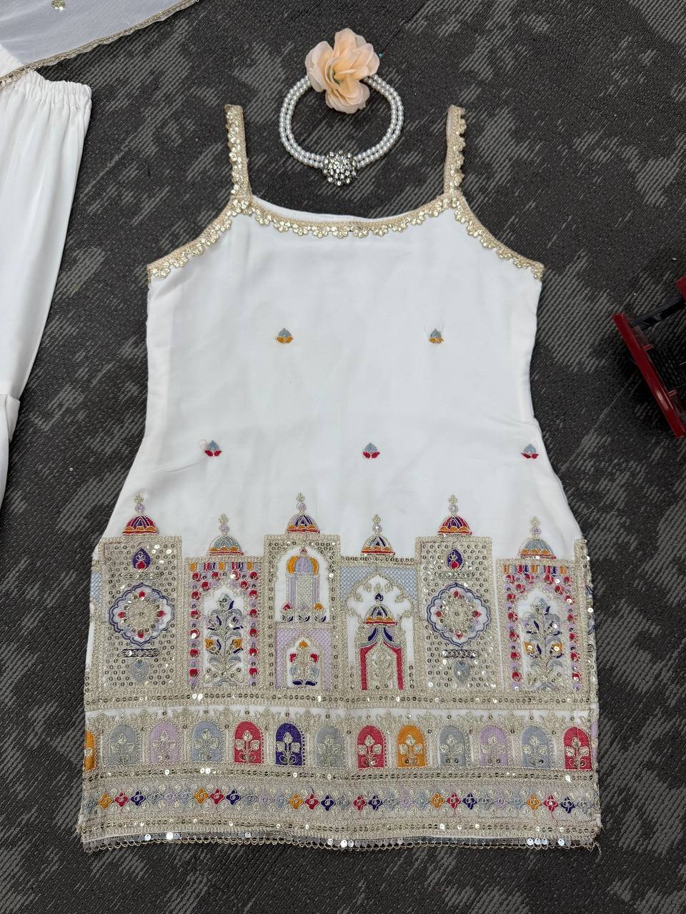• Work: Sequin Embroidery with Four-Side Lace Border