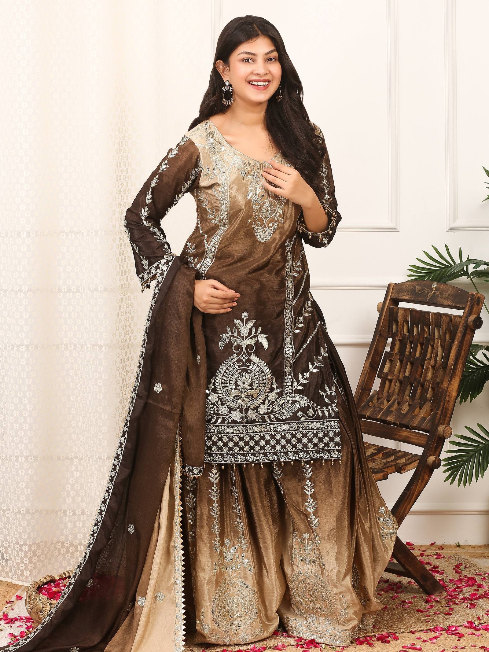 Work: Fancy Heavy Embroidery and Sequence Work with Hanging Lace Border