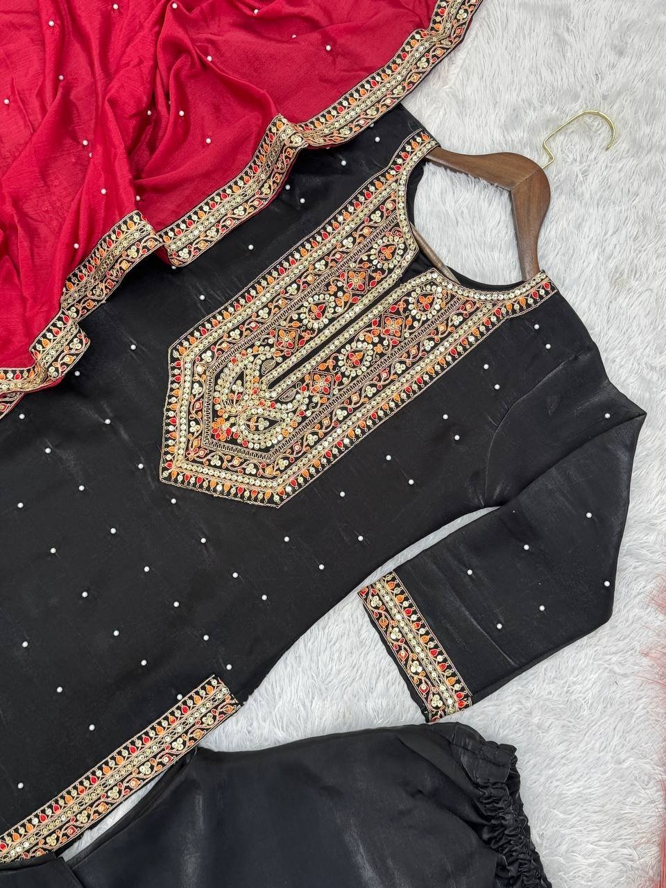Frendy Silk Kurta Set – Black Rivet Moti Detailing Fully Stitched Set
