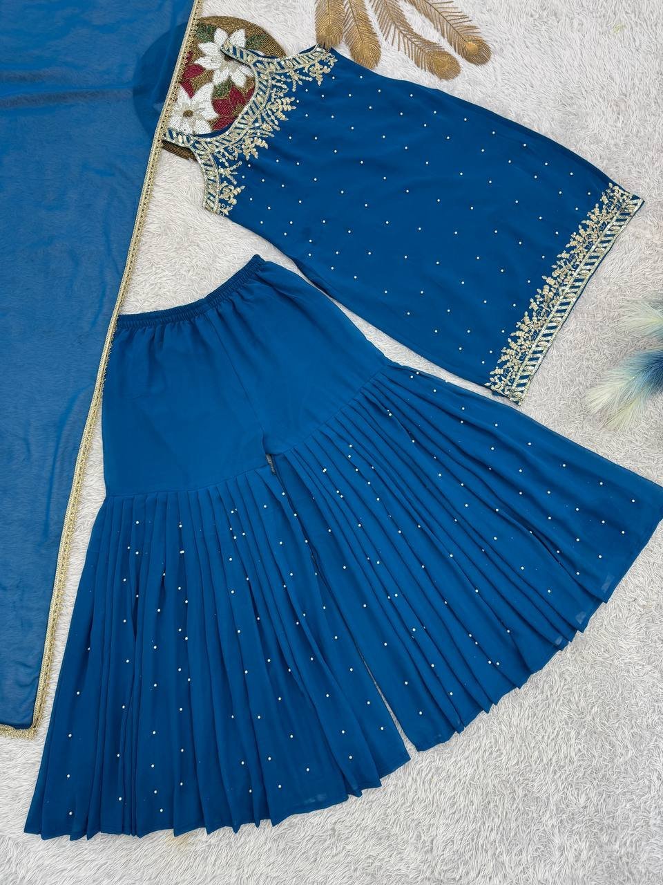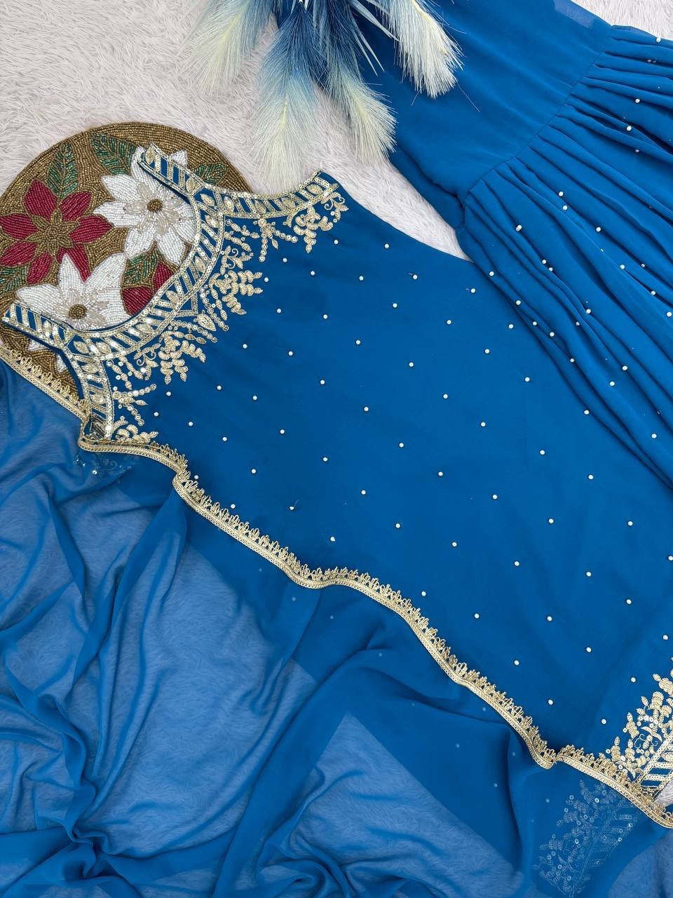 Work: Heavy Embroidery & Sequins with Riveted Moti Detailing (Front Side Work)