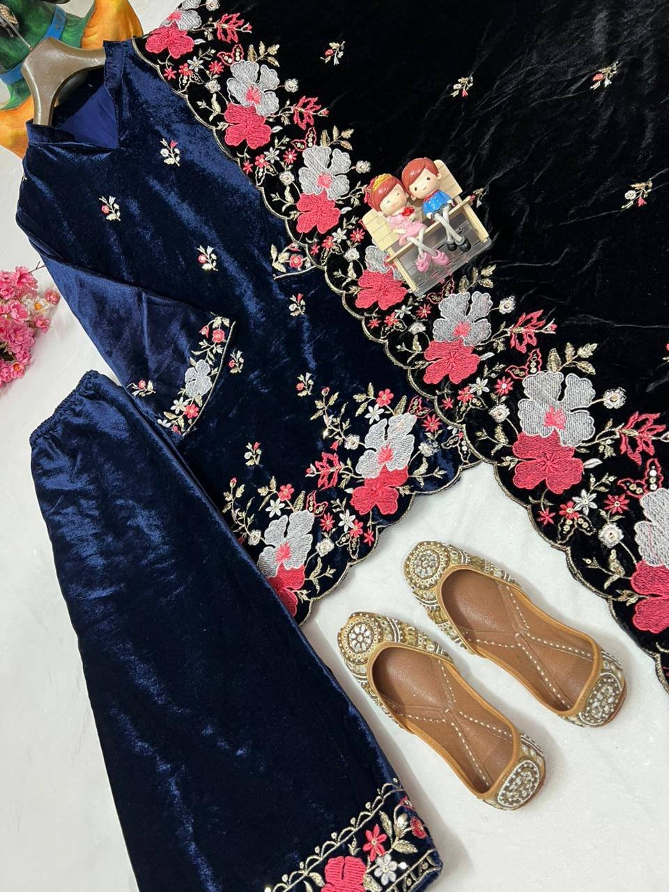 Heavy Velvet with Sequins and Thread Embroidery Work (Fully Stitched)