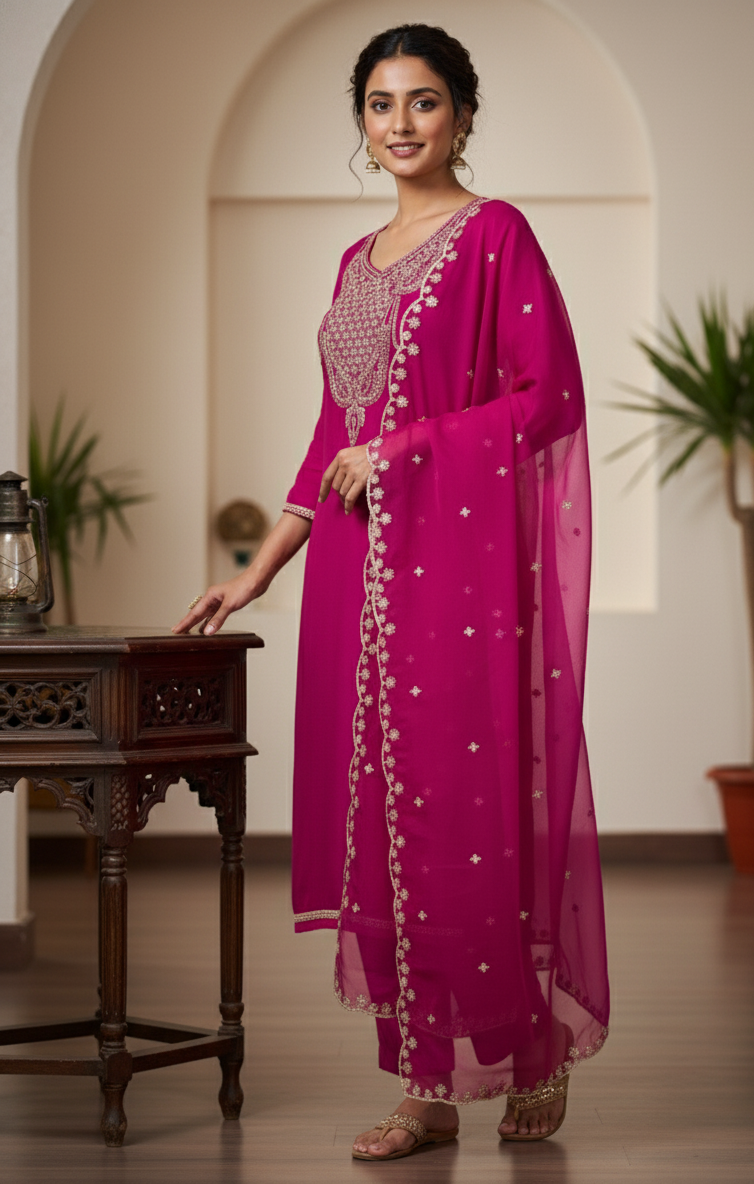 Work: Sequins and thread embroidery work that complements the outfit beautifully