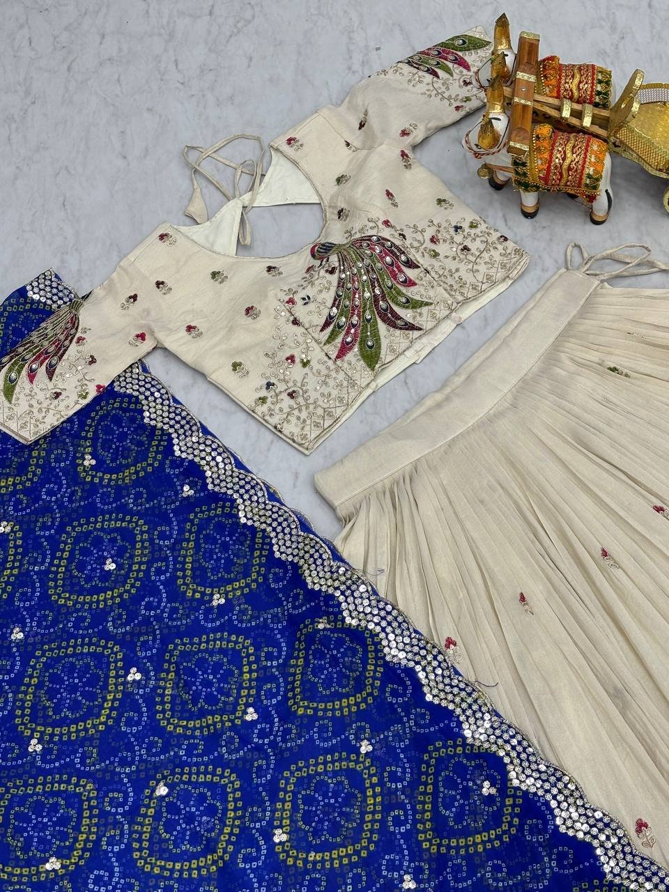 Premium Tissue Silk Heavy Embroidered Lehenga Choli with Bandhej Dupatta- Blue
