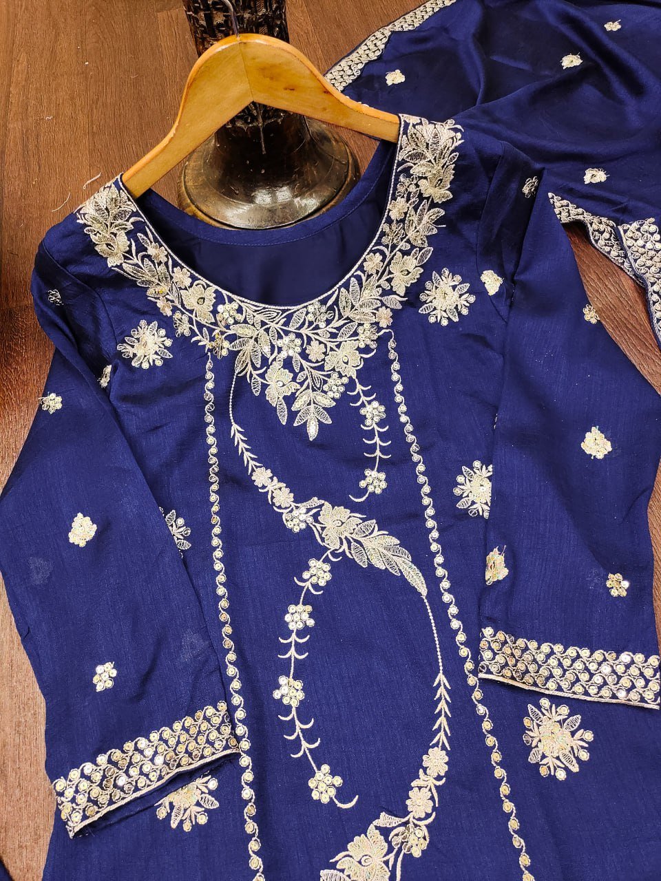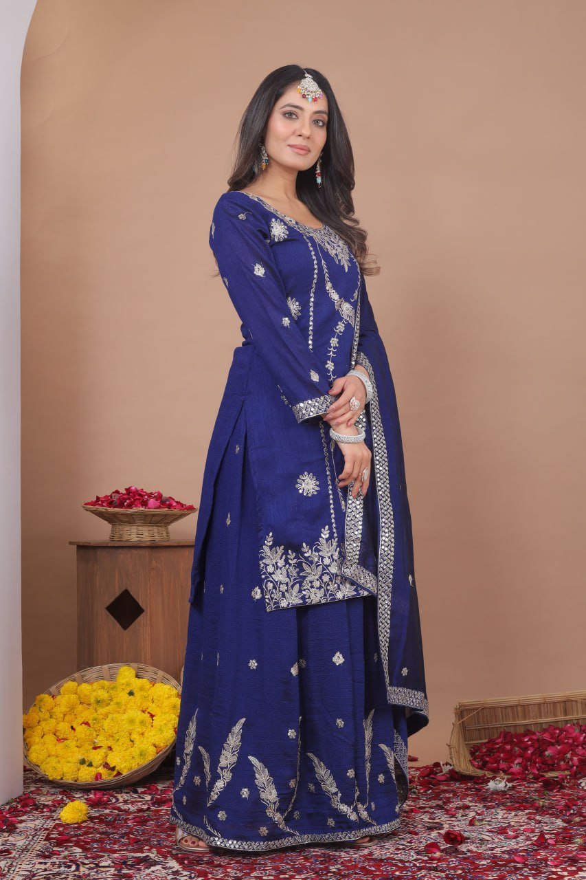 Fabric: Vichitra Blooming with Sequence Embroidery