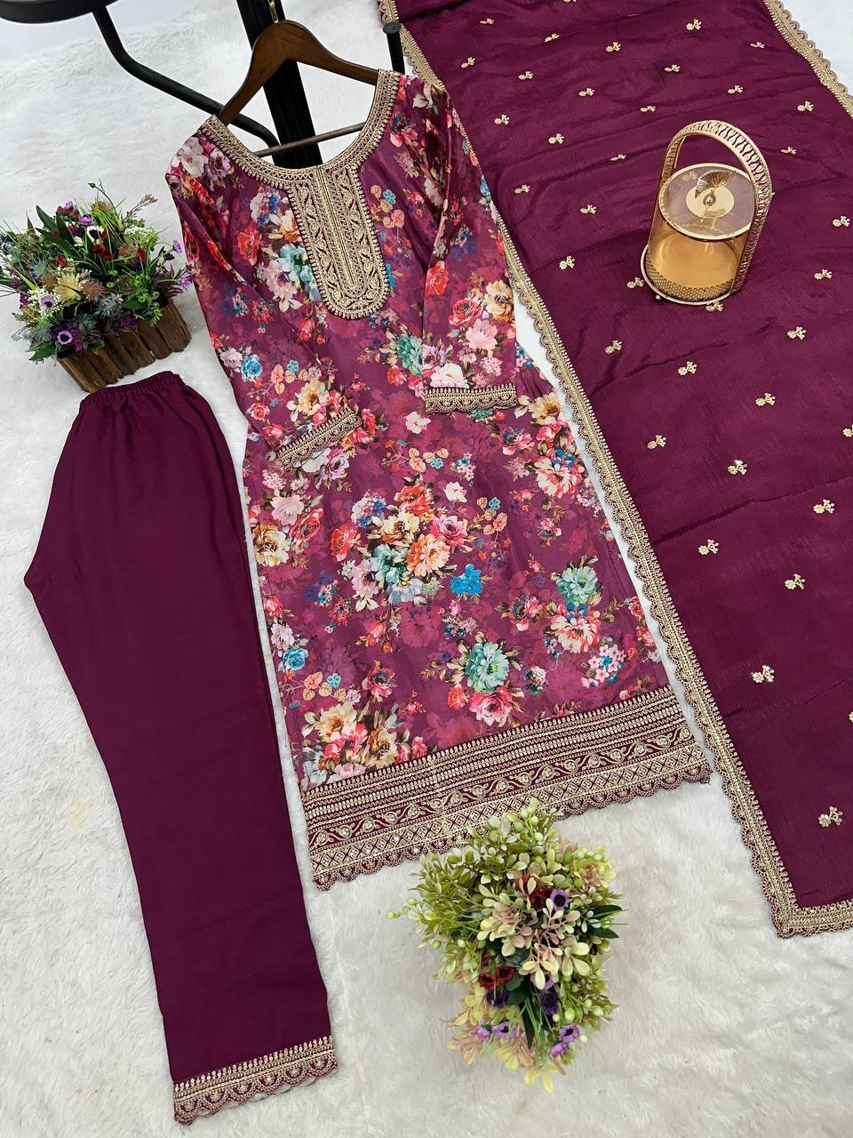 • Sleeves: Full Sleeves with Digital Print and Embroidery Sequence Coding Work