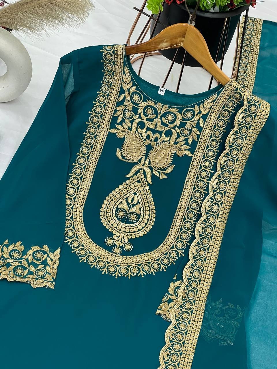 Rama Georgette Kurta Sharara Set with Thread, Sequins Work & Embroidered Dupatta