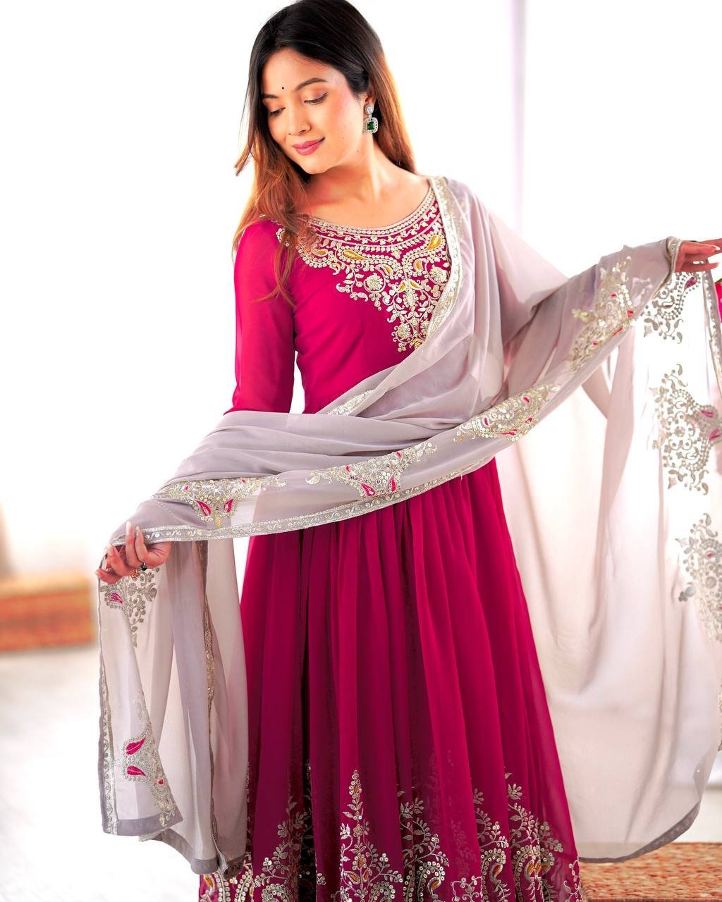 Ready to Wear Pink Georgette Embroidered Suit with Multithread Sequin Work