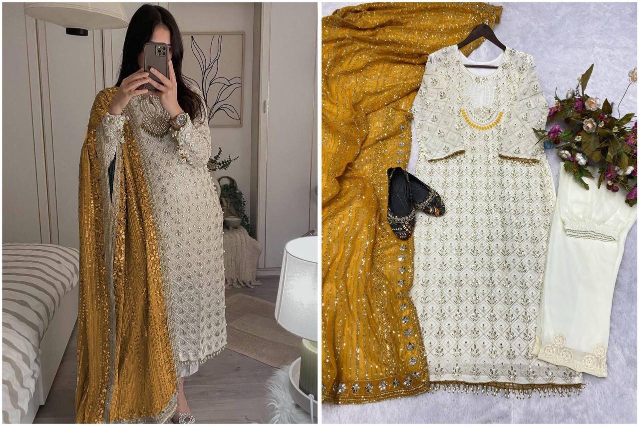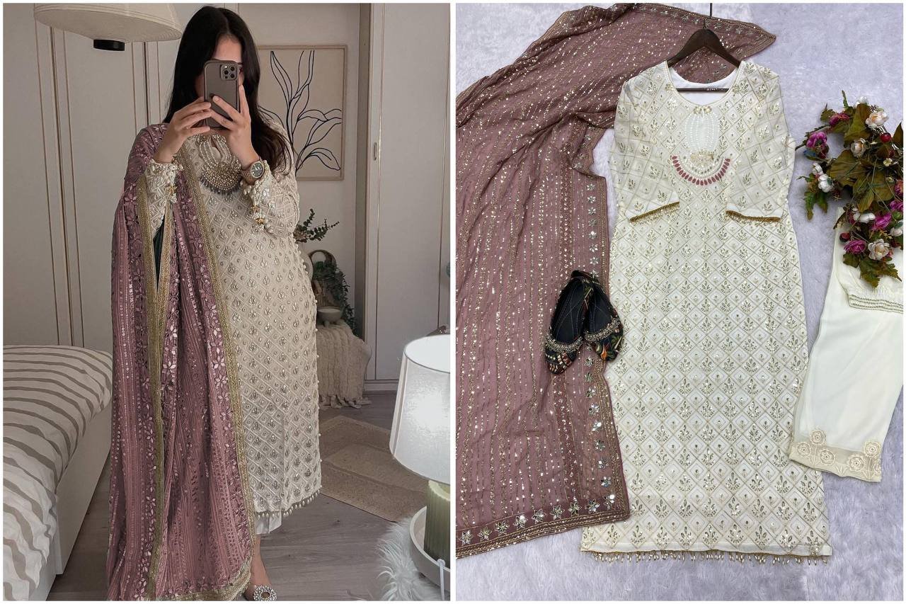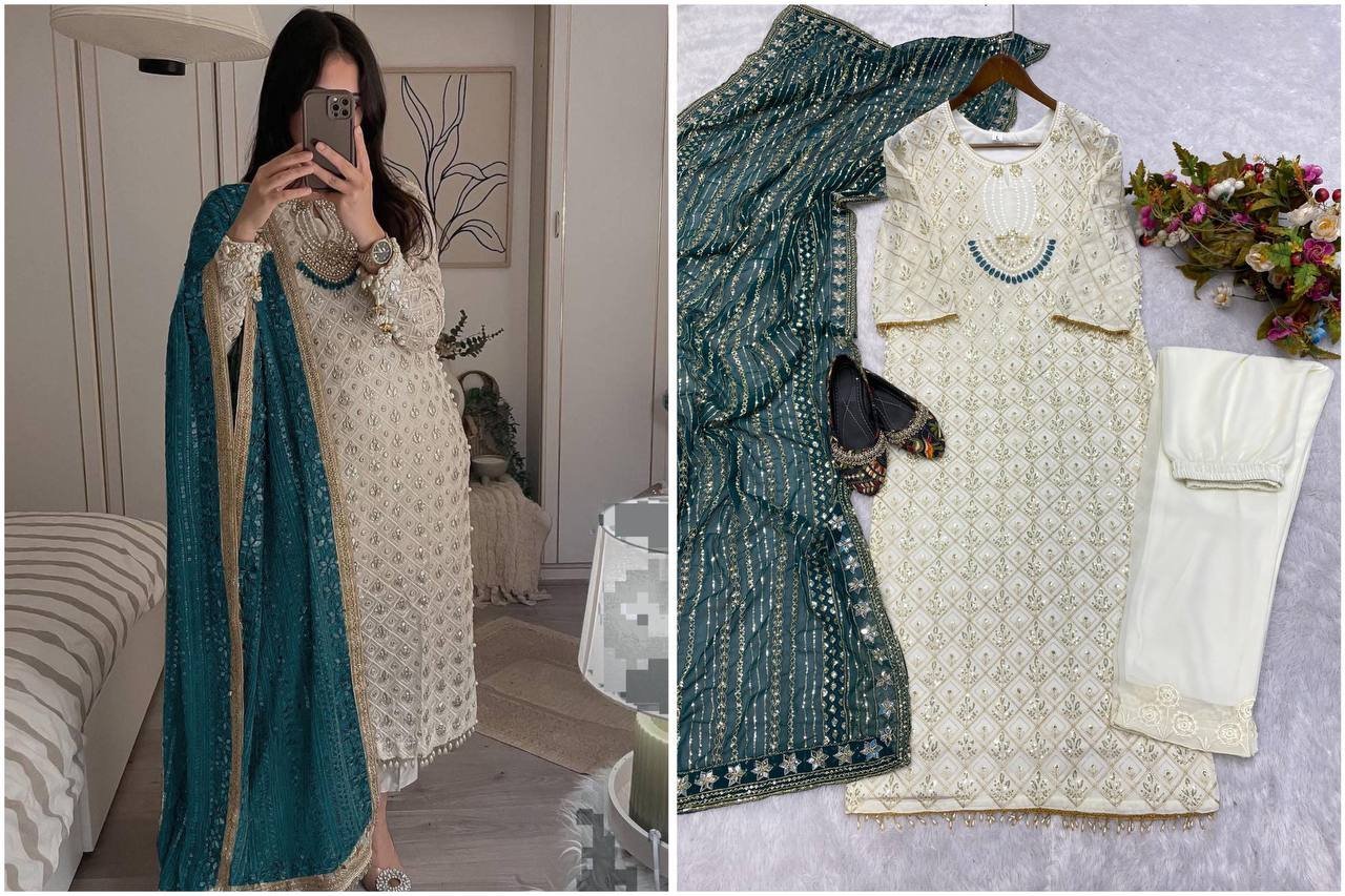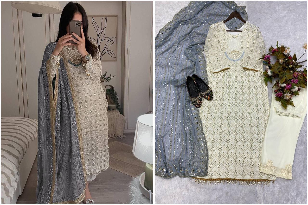 Work: Heavy Sequence Embroidery with Fancy Sleeve Moti Lace Work